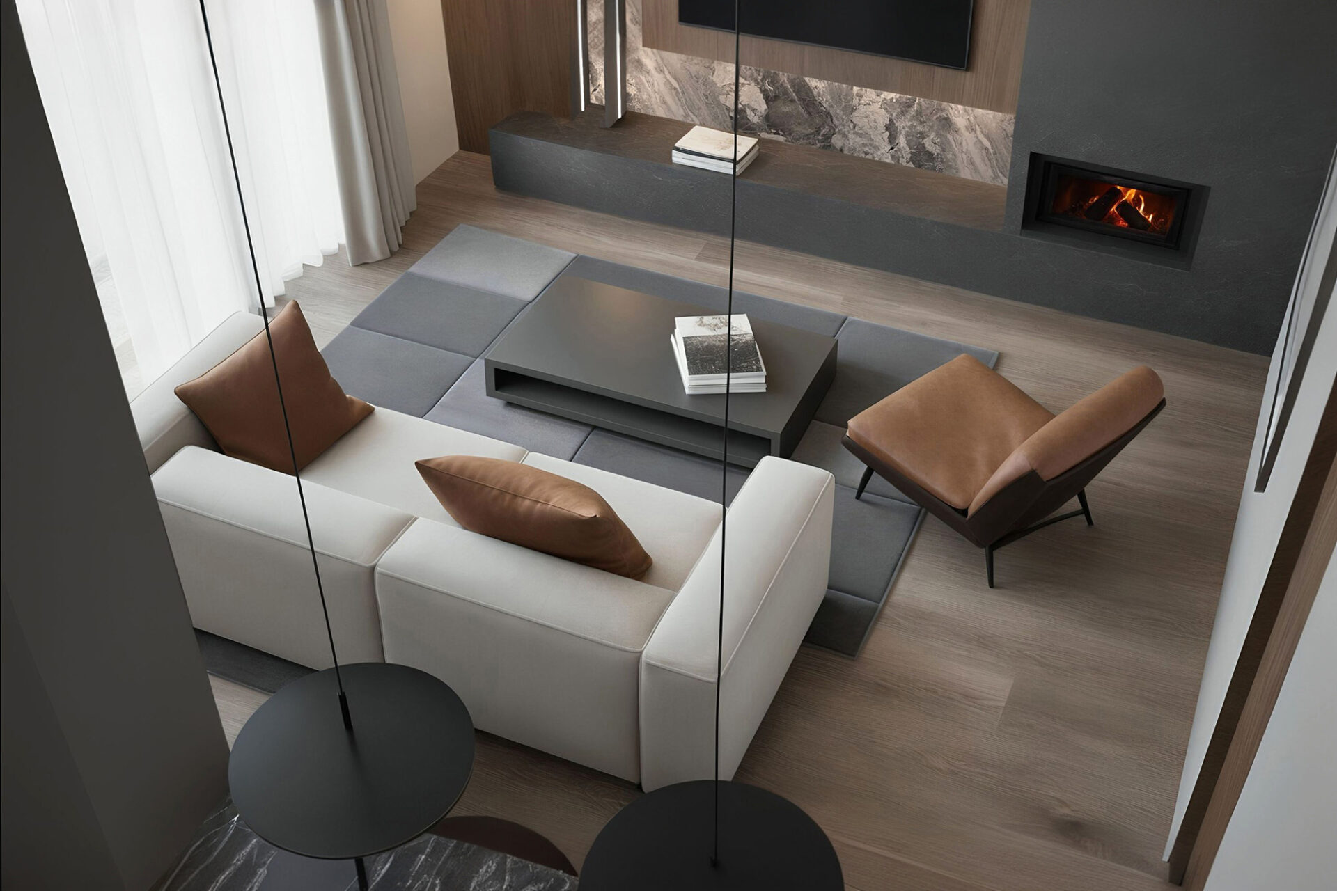 The entire project merges the aesthetics of contemporary minimalism with warmth and comfort, reflecting the lifestyle and preferences of a younger individual and creating a home that feels strong, elegant, and relaxing at the same time.