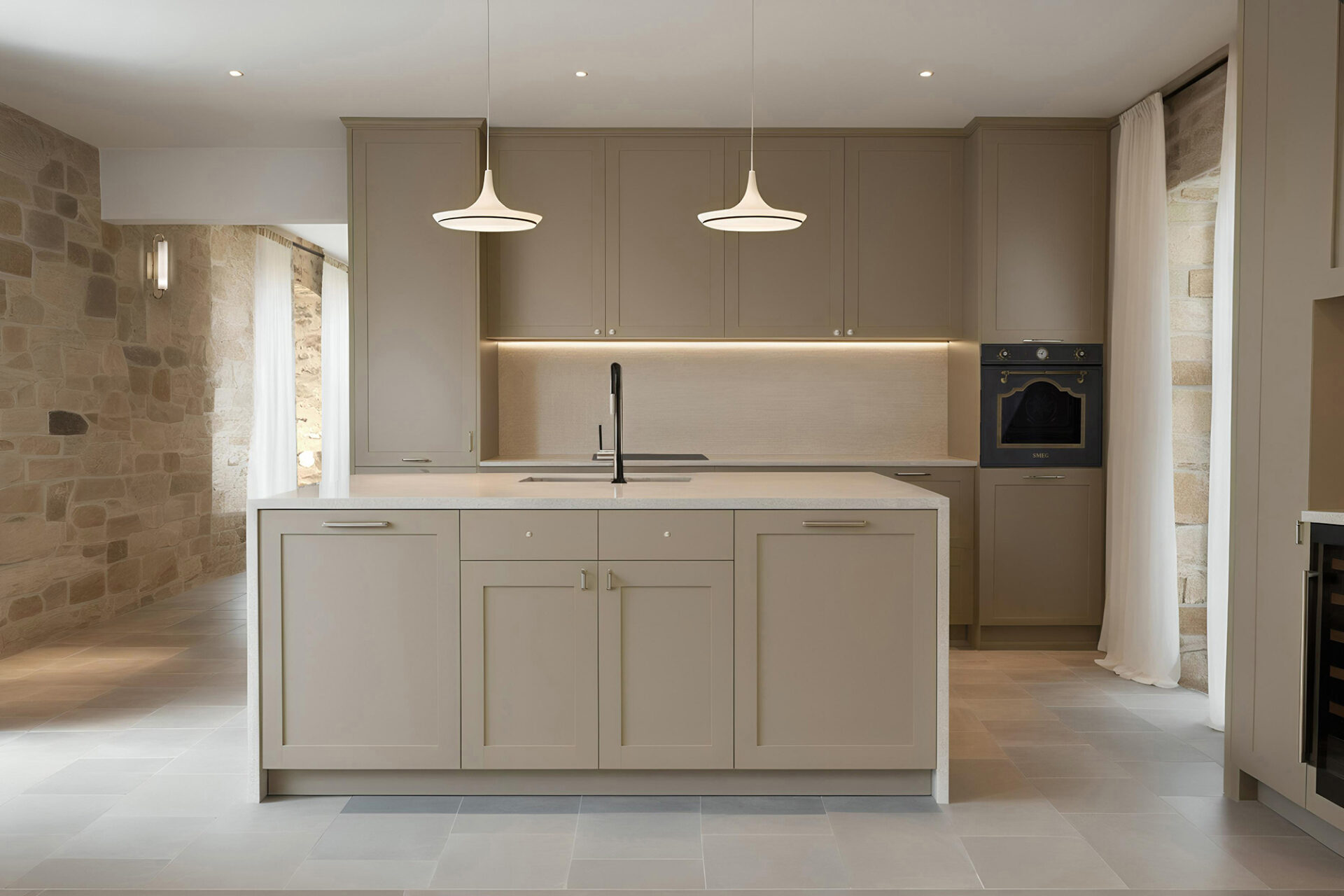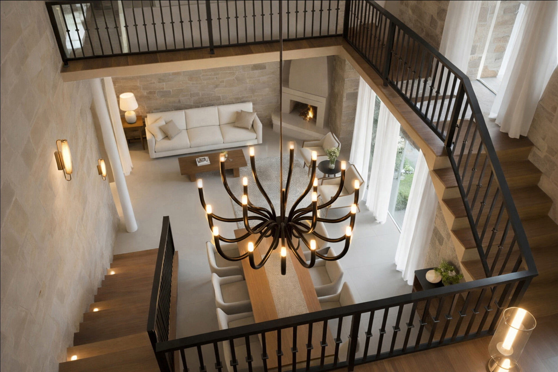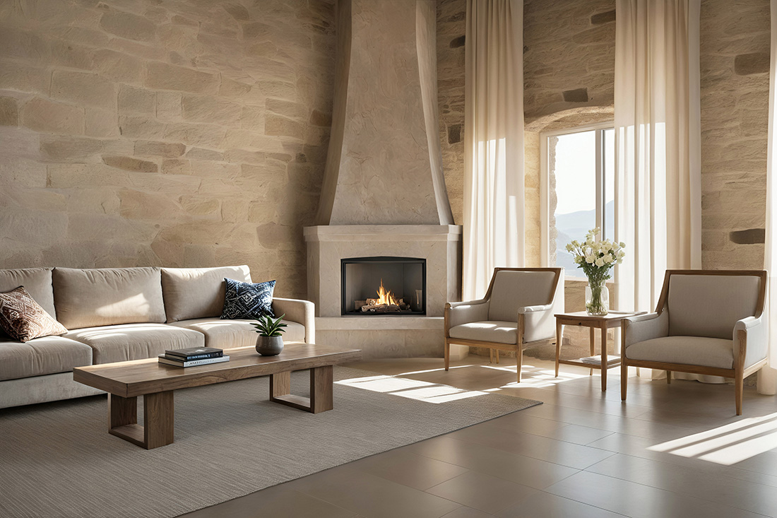 Materijali i detalji pažljivo su birani i korišteni s mjerom. Prirodni kamen, drvo, metal i keramika čine osnovu prostora, dok suvremeni elementi – staklo, metalne ograde i rasvjeta – diskretno naglašavaju arhitekturu. Luksuz ovdje proizlazi iz ravnoteže, proporcija i jasnoće prostora, a ne iz dekoracije.
