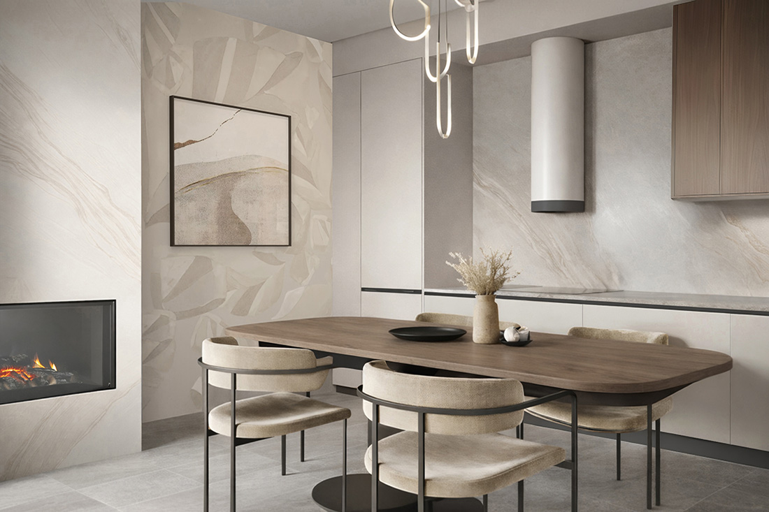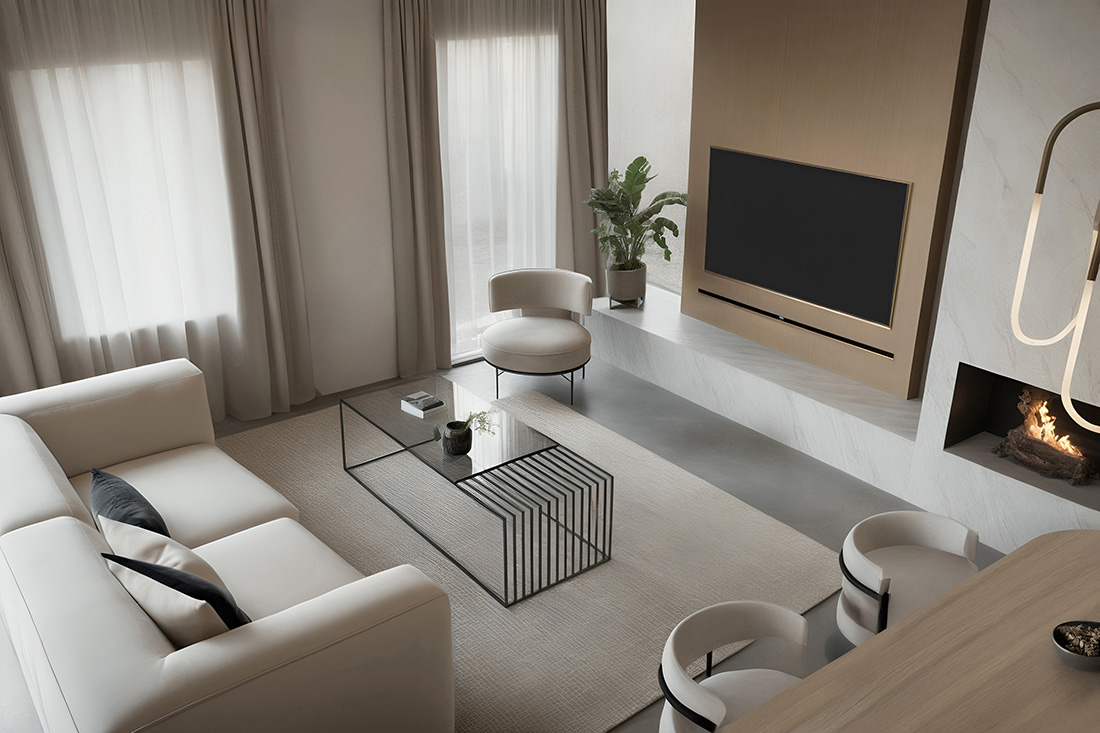 Materijali igraju ključnu ulogu u formiranju atmosfere – od toplih drvenih površina i kamenih tekstura do diskretnih metalnih akcenata i rasvjete koja prostor obavija toplim, ambijentalnim svjetlom. Dizajn ne teži dominaciji, već stvaranju ugodnog okvira za svakodnevni život, gdje se funkcionalnost i estetika prirodno isprepliću.