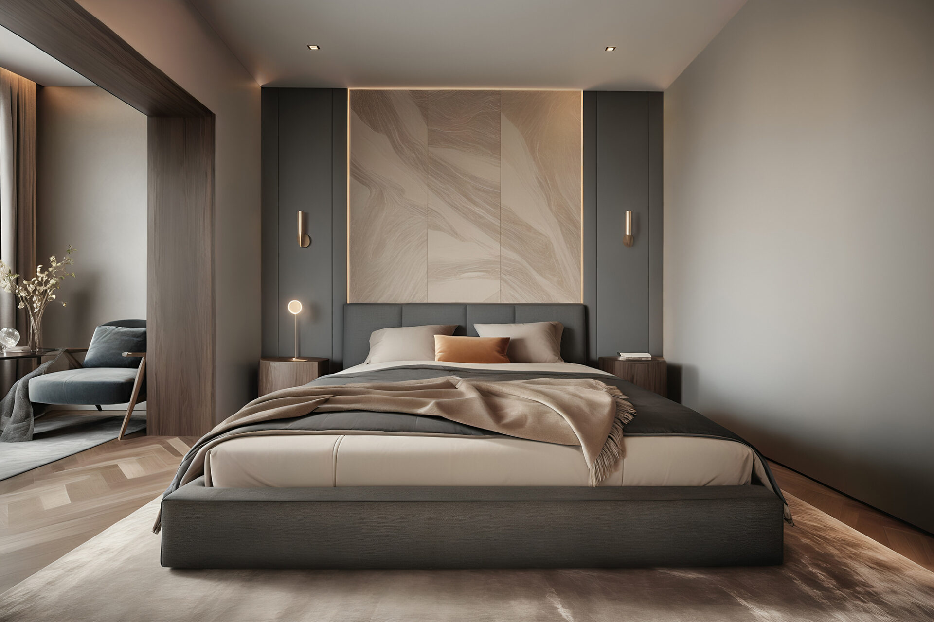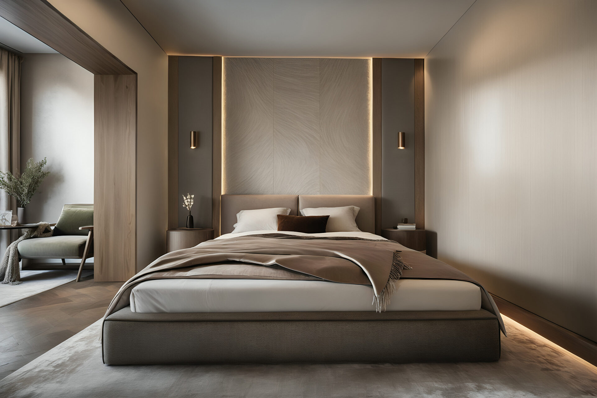 Privatne zone stana zamišljene su kao mirna utočišta, s naglaskom na udobnost i ravnotežu. Spavaće sobe karakteriziraju smirene kompozicije, meke teksture i naglašena uzglavlja, uz diskretnu rasvjetu i nenametljivu dekoraciju. Dječja soba prati isti dizajnerski jezik, ali s toplijim i suptilno razigranijim tonovima, prilagođenima mlađem korisniku.